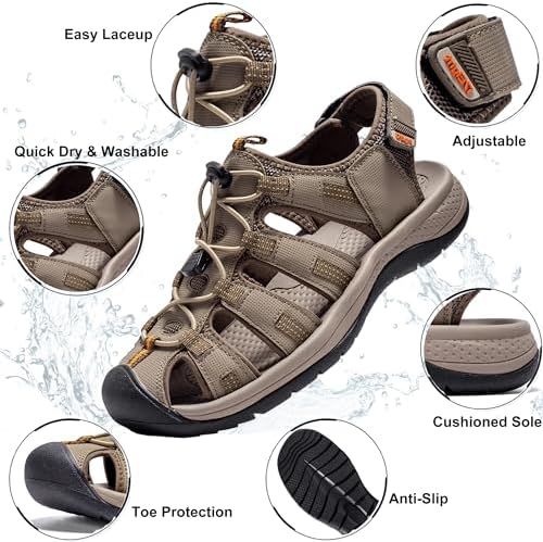 i78 Mens Athletic Hiking Sandals Closed Toe Outdoor Sport Sandals for Trail Beach Walking Waterproof Lightweight Casual