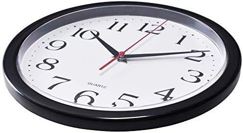 Bernhard Products Black Wall Clock Silent No Ticking 10 inches (approximately 25.4 cm) High quality quartz battery powered circular easy to read home/office/kitchen/classroom/school clock sweeping mov