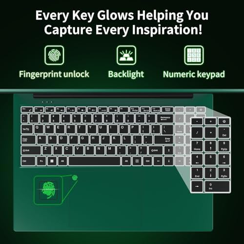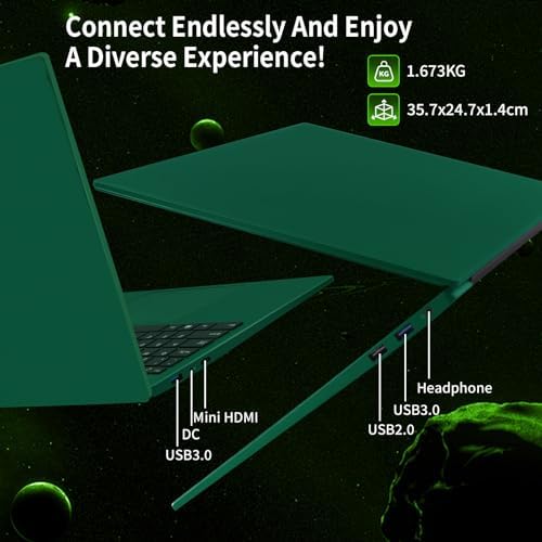 BINTEC 16 Inch Green Laptop,1920 * 1200 IPS,16GB DDR4 Windows11 Notebook PC, Celeron N5105(up to 2.9 GHz),Lightweight Notebook with Backlit Keyboard and Fingerprint Unlock Green, 16G+512GB SSD