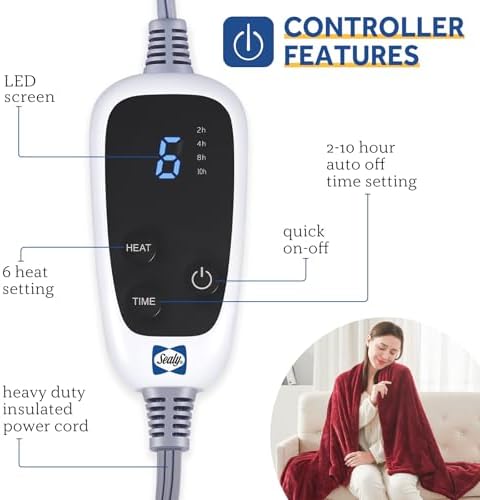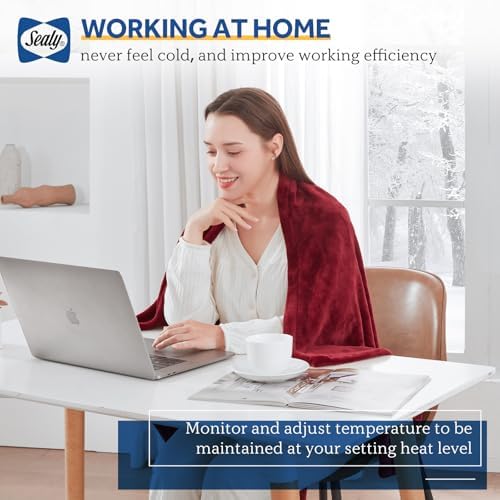 Sealy Heated Blanket Throw, Soft Flannel Electric Blanket with 6 Heat Settings & 2-10 Hour Auto Shut Off, Fast Heating with ETL Certificated Machine Washable, 50x60 Inch, Burgundy