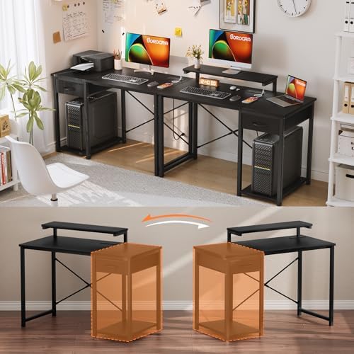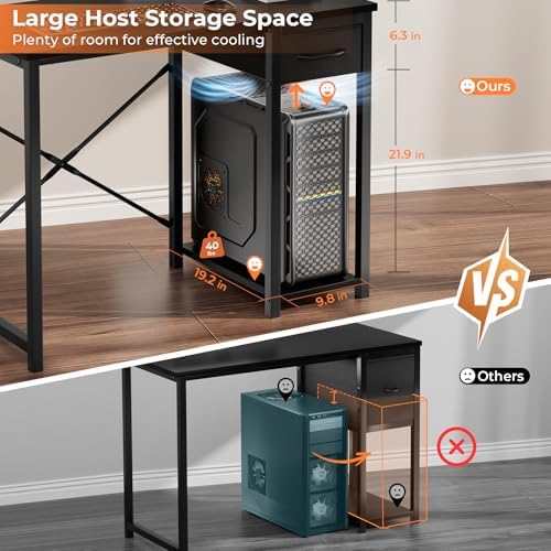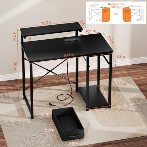 SOROGRA Computer Desk with Adjustable Monitor Stand, 39.4 in Small Desk with Reversible Storage Shelves, Office Desk with Large Desktop Spaces for Home Bedroom Workstation, Black