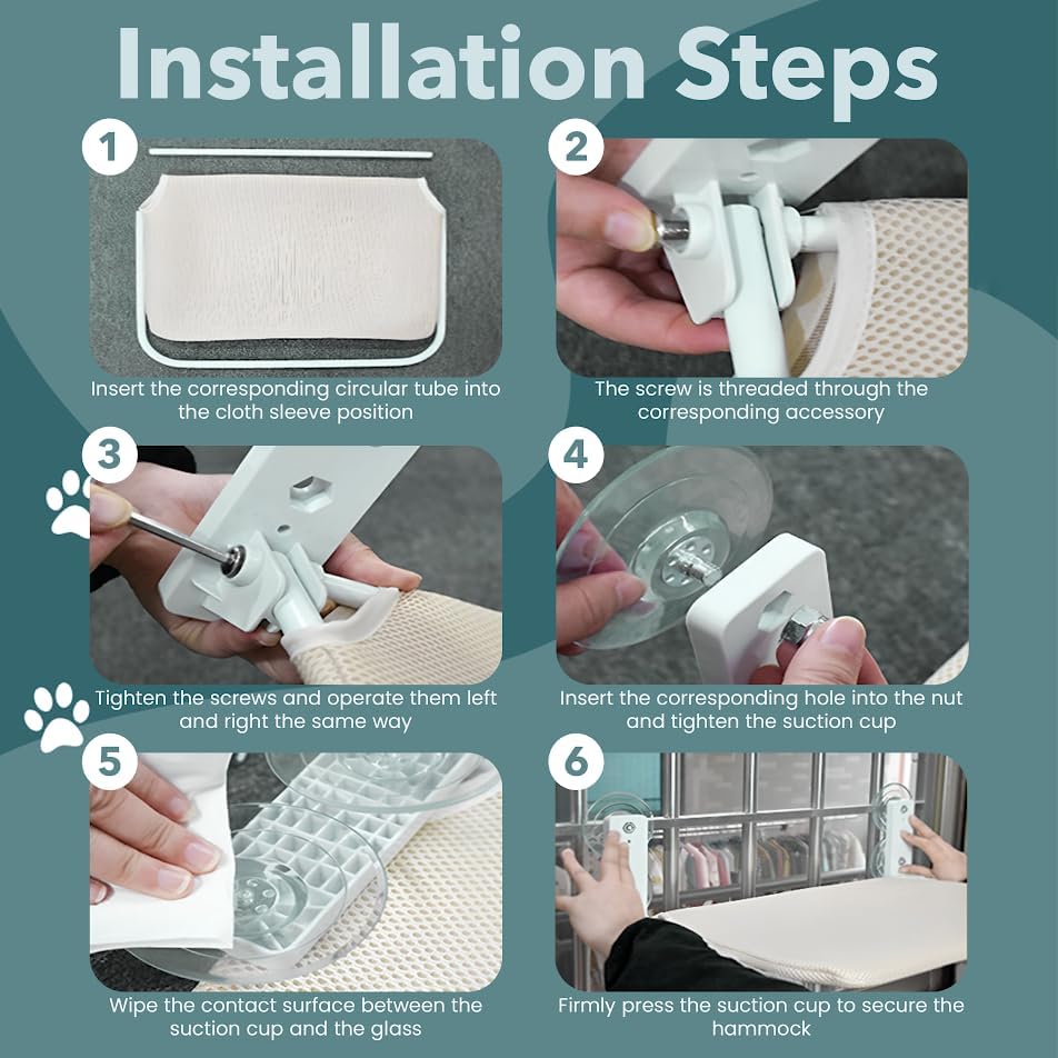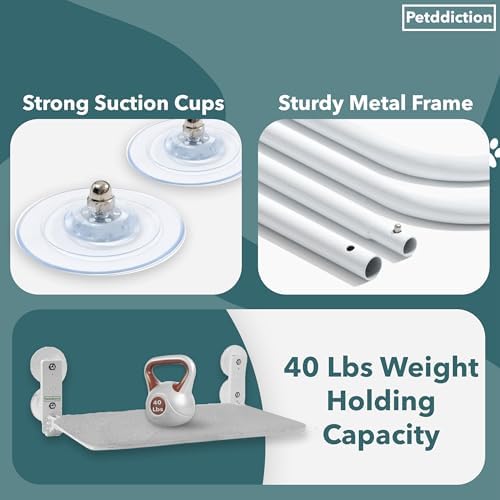 Petddiction - Cat Window Perch Cat Hammock Cat Window Bed Foldable Cordless Design Space Saving Stainless Steel Frame Strong Suction Cups Zipper Design 2 in 1 Reversible Cover