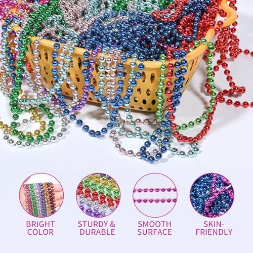 Partywonder Mardi Gras Beads Bulk Necklaces 33" Metallic Beads in 12 Assorted Colors For Festivals Parades Events Parties Favor Goody Bag Stuffers