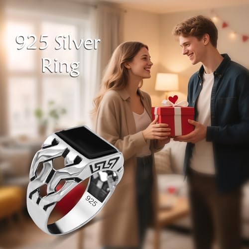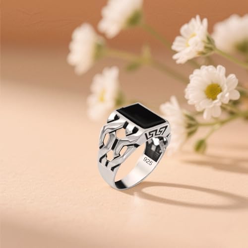 SEDITAO Personalized 925 Sterling Silver Black Onyx for Men Wedding Anniversary Ring Father's Day Gift Size 5-15