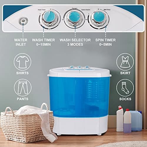 SUPER DEAL Small Portable Washing Machine 9.9lb Mini Compact Washer Twin Tub Laundry Machine Top Load Spinning and Washing Combo 6.57 FT Inlet Gravity Drain Hose