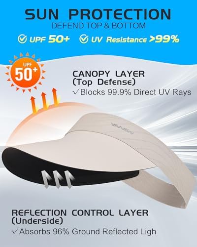 YANIKY 遮阳帽女士\/男士防晒指数 UPF 50+ 轻质运动帽可调节空顶帽马尾辫帽