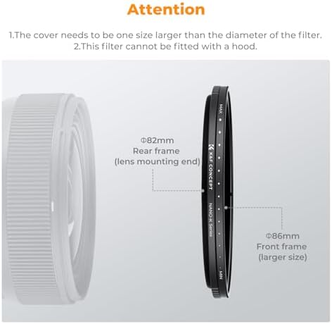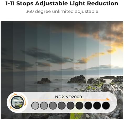 K&F Concept 82mm Variable ND2-2000 (1-11 Stops) ND Camera Lens Filter-18 Multi-Coated Adjustable Neutral Density Filter with 3 Vacuum Cleaning Cloths (K-Series)