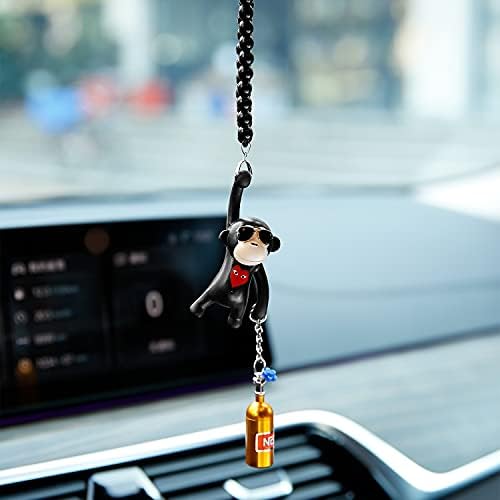 YGMONER Wearing Sunglasses Monkey Car Interior Rear View Mirror Hanging Ornaments (black & nitrogen bottle)