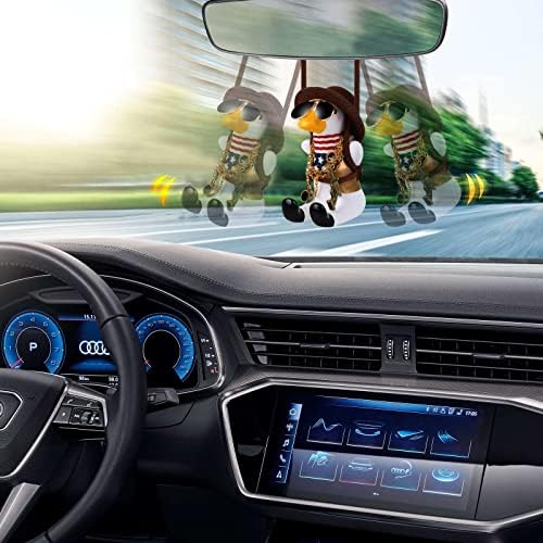 Cool Swinging Duck Car Hanging Ornament,Flying Duck with Sunglasses and Necklace, Cute Car Interior Rear View Mirror Decoration and Rear View Mirrior Hanging Accessories Gift for Men Women Teens