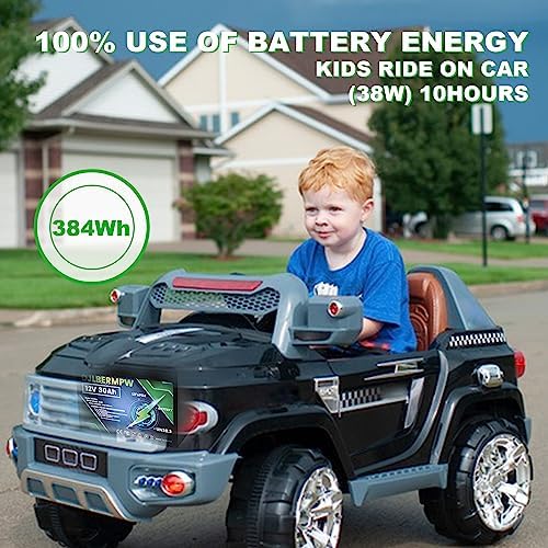 DJLBERMPW 12V 30Ah Lithium Battery 12V LiFePO4 Batteries 384W Load Power 4000+ Deep Cycle Lithium Iron Phosphate Battery Built-in 30A BMS Power Wheels Batteries for RV,Fish Finder,Emergency Light