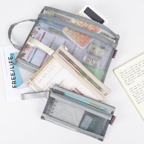 Valtiner 12-Pack Mesh Zipper Pouch Bags with Handles, Nylon Document Bag Double-Layer See Through, File Storage Pouches for Office School Supplies (4Pcs A4 & 4Pcs A5 & 4Pcs A6)