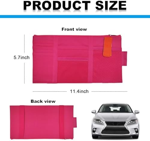 Suvnie Car Sun Visor Organizer, Auto Interior Visor Storage Pouch Holder with Zipper, Multi-Pocket Net Personal Belonging Organizer, Universal Car Accessory for Cards, Documents (Rose Red)