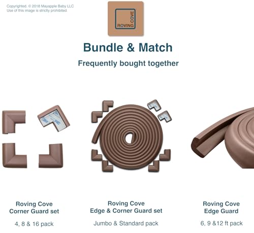 Roving Cove HeftyFit Edge Corner Protector Baby Proofing (Large 18ft Edge 8 Corners), Heavy-Duty, Soft NBR Rubber Foam, Furniture Fireplace Safety Bumper Guard, 3M Adhesive, Coffee Brown