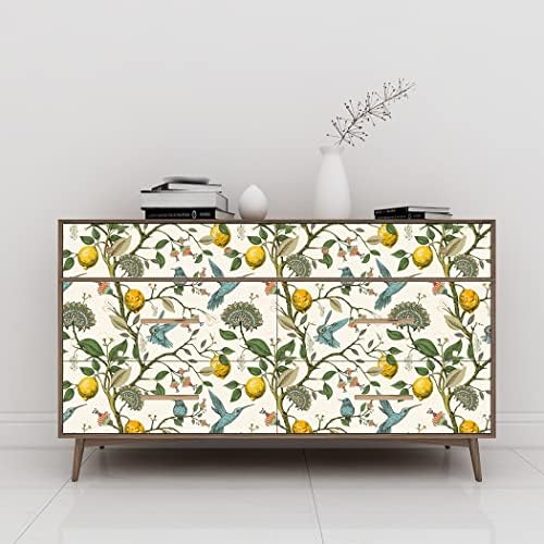 Meihodan Blue Bird Self Adhesive Wallpaper Fresh Lemon Tree Peel and Stick Wallpaper Removable Waterproof Prepasted Contact Paper Wall Mural 17.7in x 9.8ft