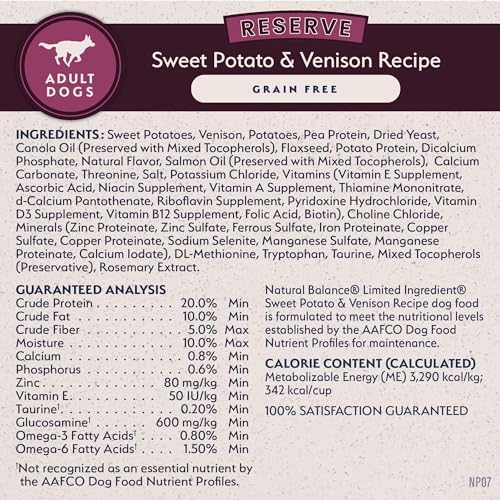 Natural Balance Limited Ingredient Adult Grain-Free Dry Dog Food, Reserve Sweet Potato & Venison Recipe, 22 Pound (Pack of 1)