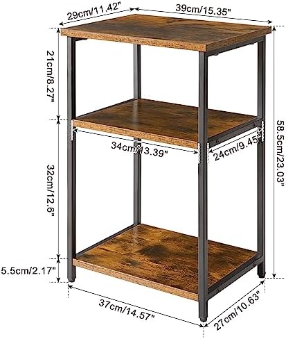 IBUYKE Side Table,3-Tier End Table, Industrial Nightstand Small Table with Storage Shelf, for Bedroom, Living Room, Hallway, Rustic Brown UTMJ402H