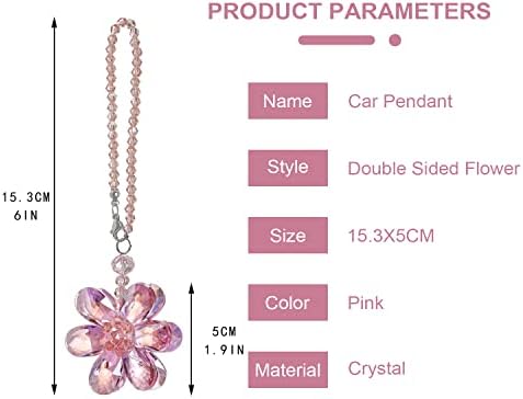 Crystal Flower Car Rear View Mirror Pendant - Pink Crystal Beads Charm Decor for Women Interior