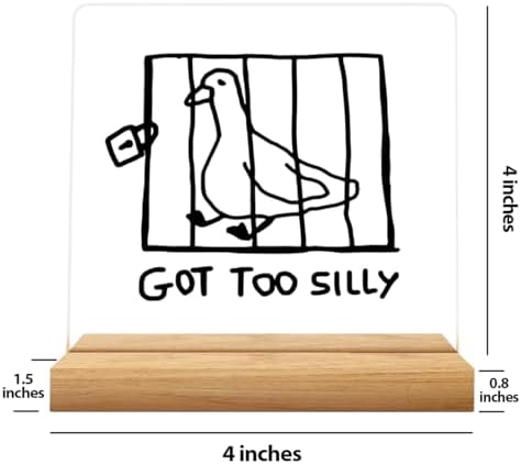 Got too Silly Funny Goose Pun Acrylic Sign Silly Goose Decorations Goose Lover Gift for Women Men Silly Goose Birthday Gifts Humor Silly Goose Decor 4 x 4 inch