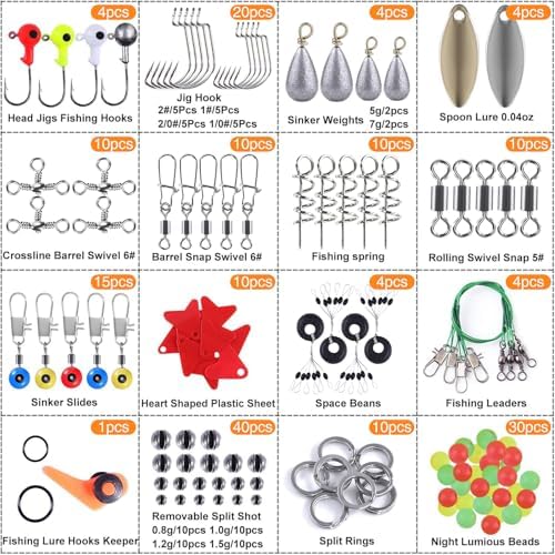 TOPFORT 187\/343pcs Fishing Accessories Kit, Organized Fishing Tackle Box with Tackle Included, Fishing Hooks, Fishing Weights Sinkers, Fishing Gear and Equipment, Fishing Gift for Men