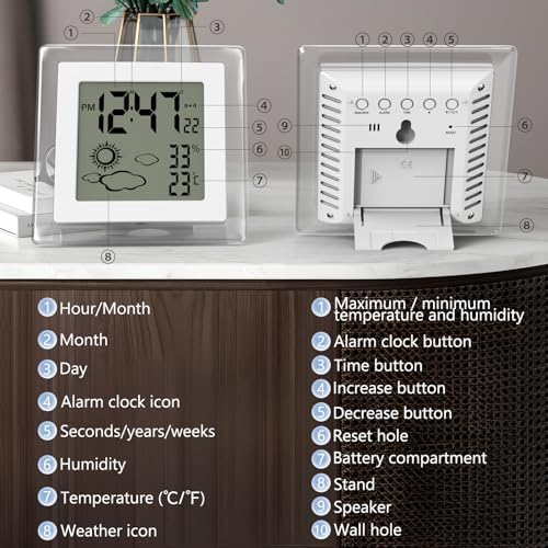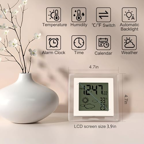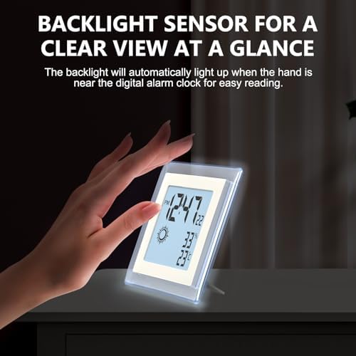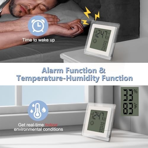 VOILEIPAGI Small Clock Digital Battery Operated Alarm Clock with Auto Backlight, Indoor Temperature Humidity, 12\/24H, Date, Travel Alarm Clock Desk Clock Small Clock for Shelf (Battery Included)