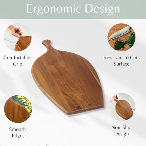 Daniks 100% Natural Acacia Wood Cutting Board 14x9\u201D \u2013 Extra Thick, Heavy Duty Wooden Chopping Board for Kitchen & Serving \u2013 Perfect for Fruits, Vegetables, Meat, and Bread \u2013 BP
