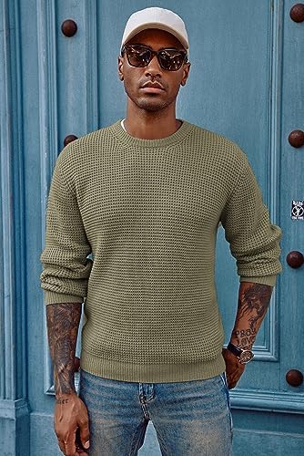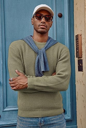PJ PAUL JONES 男式圆领套头毛衣华夫格纹理长袖针织毛衣