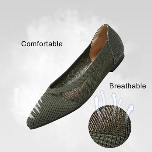 TINGRISE Women's Flats Shoes Pointed Toe Knit Ballet Comfortable Dressy Mesh Flat