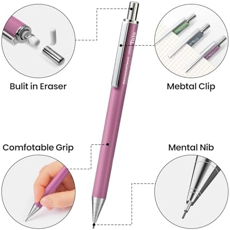 Aesthetic 0.7mm Mechanical Pencil Set with Case \u2013 3 Vintage Mechanical Pencils, 4 Tubes HB #2 Lead Refills, 3 Erasers & 12 Eraser Refills, Cute Pencil Kit for Back to School Stationery Suppli