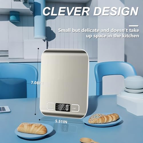 Food Scale, 11lb Kitchen Scale with 6 Units Tare Function & LCD Display, 0.05oz\/1g Stainless Steel Digital Food Scale Grams and Ounces for Baking, Cooking, Dieting and Meal Prep (Batteries Includ
