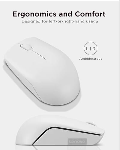 Lenovo 300 Wireless Mouse \u2013 Computer Mouse for PC, Laptop with Windows \u2013 Ambidextrous Design \u2013 2.4 GHz Nano USB Receiver \u2013 12 Month Battery Life