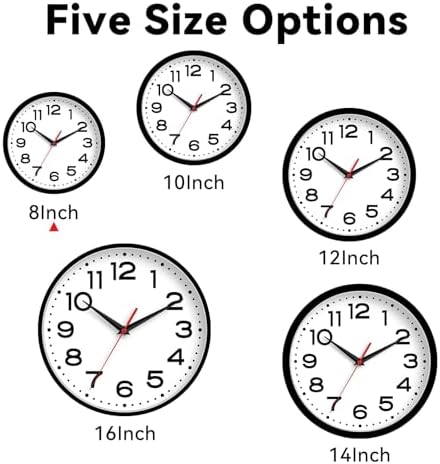 Roymnie Wall Clock Silent No Ticking Modern Clock Battery Powered 8 inches (approximately 20.3 cm) Small Classic Simulation Decoration Kitchen, Living Room, Office, Bedroom, Bathroom (Black)