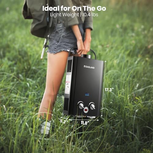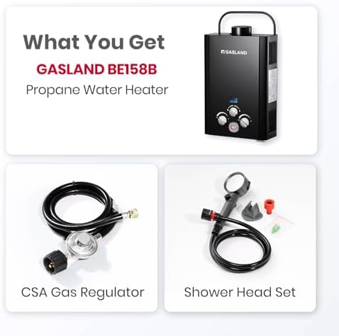 GASLAND outdoor BE158B 1.58GPM 6L portable gas water heater, instant propane heater, overheat protection, easy to install, suitable for RVs, cabins, barns, camping, boats, black