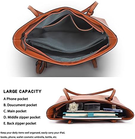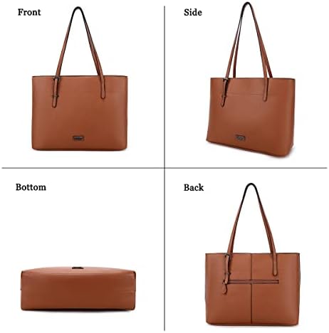 【K.EYER Brand Design】This tote bag is designed with a concept that one multiple functional purse fits all people at any age for every occasion, causal or professional; business meeting or vacations. 【Great Gift Choice】More than 15 different color options to choose. Perfect gift for all age, wife, friends, mom on any significant moments like anniversary, birthday, ect. Classic design suitable for any style clothing on any occasions, causal or professional. 【Organized & Large Capacity】Two center main compartments separated by one large zipper pocket, one small zip pocket, two slot pockets, and one zip back pocket. High capacity with lots of pockets, keep all your stuff organized. Approx. 15''L*10.2''H*3.9''W 【High Quality Material】Top zipper closure decorated with asymmetric buckle hardware --adjustable shoulder straps. Make of vegan material with textile lining, durable and easy wipe clean. 【Reinforced Shoulder Straps】 The 2cm-wide folding stitching design thickens straps to hold up better, won't dig into your shoulders while carrying heavy stuffs, increasing their durability and comfort.
