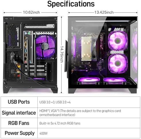 LXZ Desktop PC Computer Ryzen 5 5600GT 6 core 3.9GHz, 16G DDR4 RAM, 512G NVME SSD, Tower Computer for Home and Office (Black)
