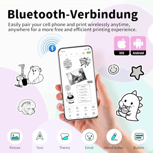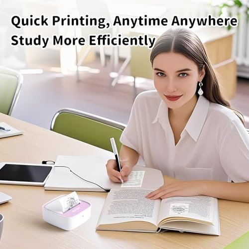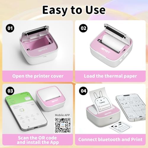 IDPRT portable mini thermal sticker printer, Bluetooth ink free printer with 1 roll of sticker paper, used for notes, diaries DIY、 Label printing, compatible with iOS and Android phones, pink color