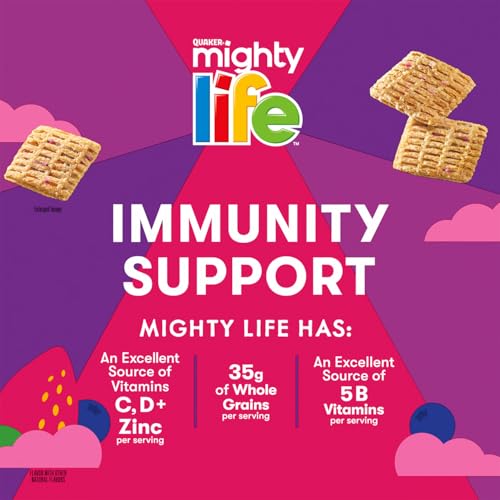 Quaker Mighty Life Multigrain Cereal, Strawberry Blueberry Bliss, Immunity Support, 22.3 Oz Family Size