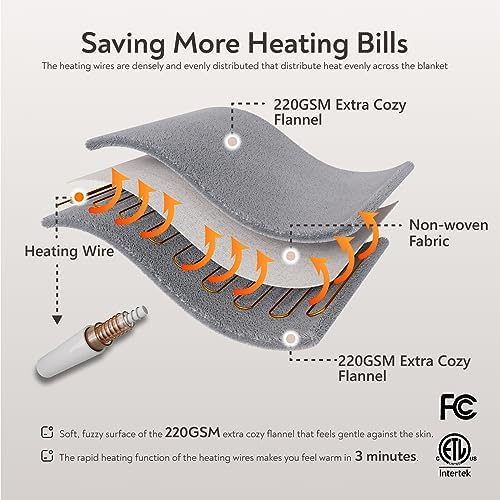 Wapane foot bag heating blanket electric blanket with 0 heating levels and automatic shut-off function, flannel quick heating cover blanket 7cm x 5.4cm, machine washable, dark gray