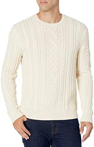 Amazon Essentials Men's Long-Sleeve 100% Cotton Fisherman Cable Crewneck Sweater