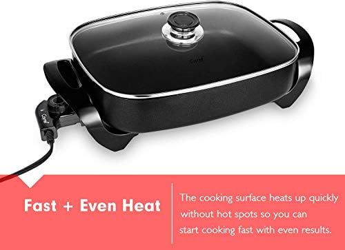 Caynel Professional Non-stick Copper Electric Skillet Jumbo, Deep Dish with Tempered Glass Vented Lid, Upgrade Thermostat, 16\u201Dx 12\u201Dx 3.15\u201D- 8 quart (16 * 12 Black)