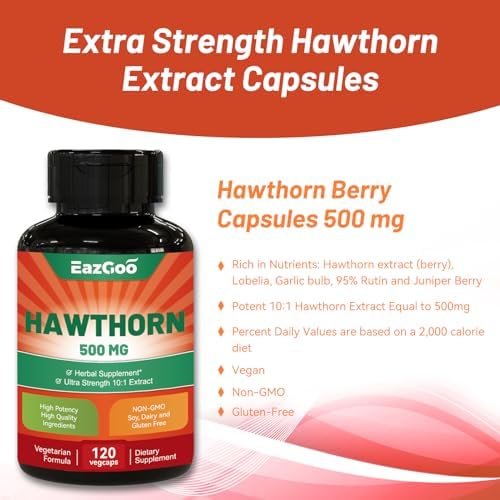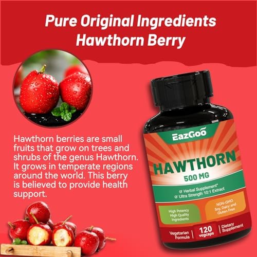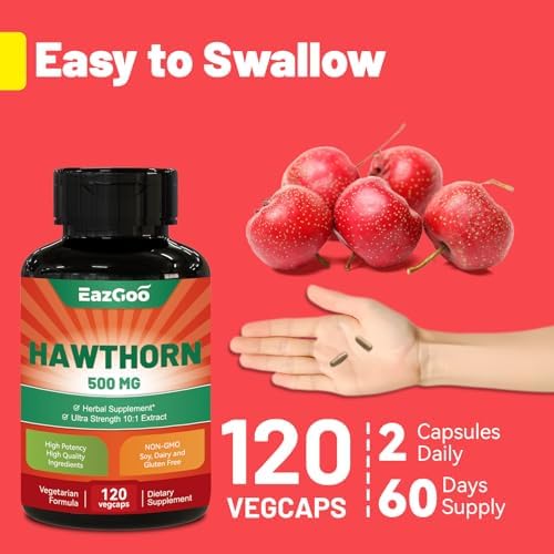 EAZGOO Hawthorn Berry Capsules, Extra Strength Hawthorn Berry Supplement, 120 Vegan Capsules