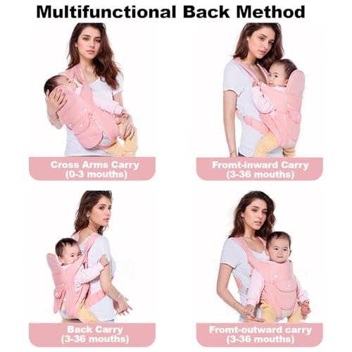 4-in-1 Baby Carrier Newborn to Toddler, Infant Carrier Ergonomic Adjustable Holder Portable Convertible Front and Back Backpack Carry for Infants Toddlers Babies 7-45 Pounds (Pink)