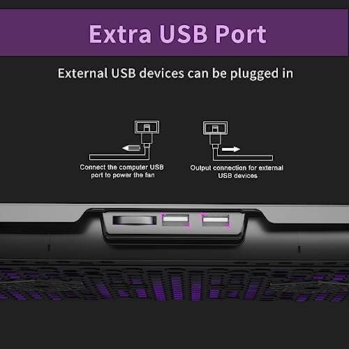 AICHESON Laptop Cooling Pad for 15.6 to 17.3 Inches PC Notebooks, 5 Fans Computer Cooler Stands with Purple Lights Desk Chiller Mat, S035