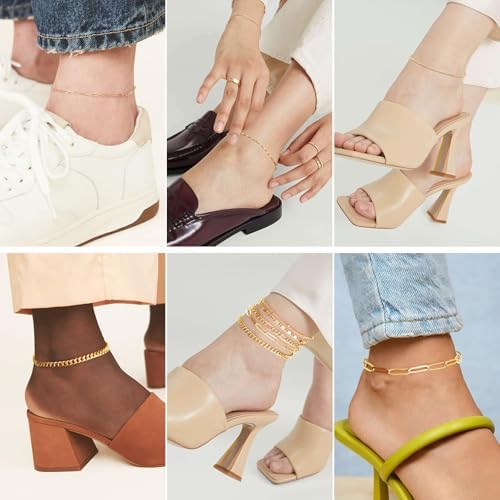 Gokeey Ankle Bracelets for Women, 14k Gold Jewelry Set Waterproof Layered Cuban Figaro Link Chain Anklets Set Gold Anklets Summer Boho Beach Jewelry Gift Adjustable Size