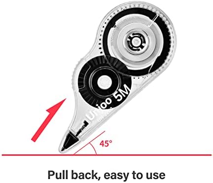 Unjoo White Correction Tape, Easy To Use Applicator for Instant Corrections Wrong Writing At Any Time, For school, Office (12pack, 5M\/196" x 0.2", Black)