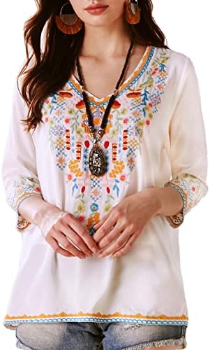 Higustar Mexican Tops for Women Embroidered Shirts Bohemian Hippie Clothes Tunic Fiesta Plus Size Boho Peasant Blouses