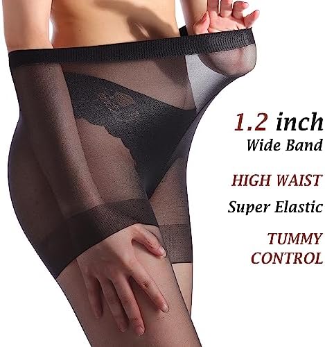 ZIHUA 2 Pairs Sheer Tights for Women, 20 Denier Control Shaping Nylon Ladies Clear Pantyhose S-XL Black Nude
