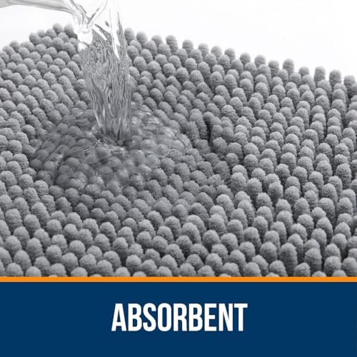 OLANLY Bathroom Rugs 30x20, Extra Soft Absorbent Chenille Bath Rugs, Rubber Backing Quick Dry, Machine Washable Bath Mats for Bathroom Floor, Tub and Shower, Home Decor Accessories, Grey