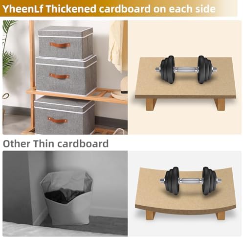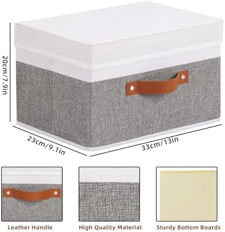YheenLf Fabric Storage Boxes with Lids, Linen Foldable Cloth Baskets, Closet Organizer Containers with Double Handles, Sweater Bins for Bedroom, White and Grey, 3 Pack, 13 x 9.1 x 7.9 Inch
