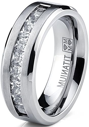 Metal Masters Titanium Men's Wedding Band Engagement Ring with 9 Large Princess Cut Cubic Zirconia