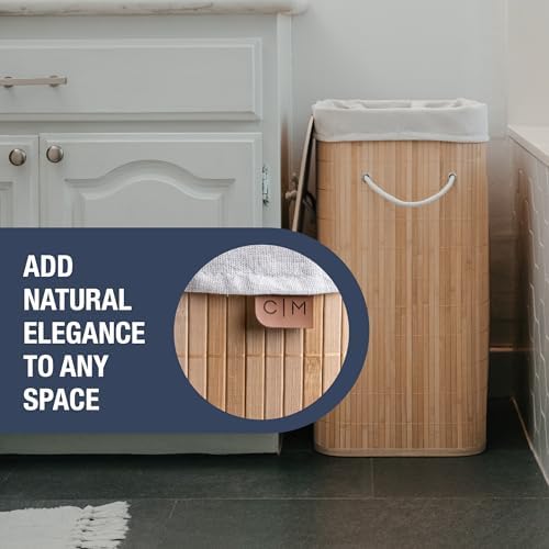 CleverMade Natural Bamboo Hamper LUXE, Double Hamper - 27 Gal (103L) Bamboo Laundry Hamper with Lid and Removable Machine Washable Laundry Bag - Holds 4 Loads and 50 Lbs.